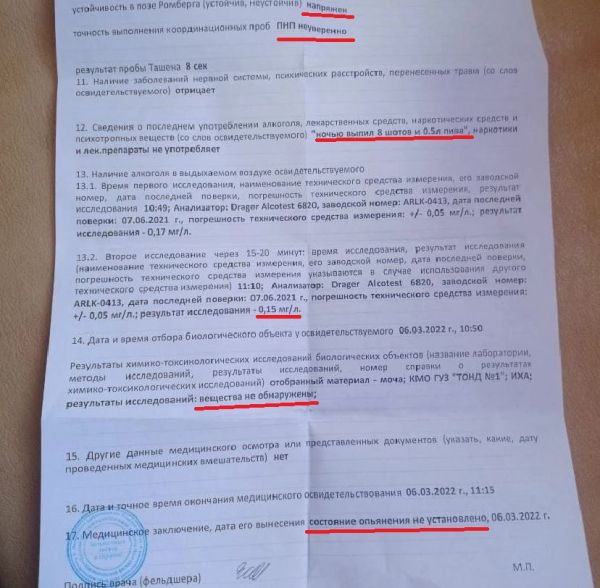 После дело об оскорблении полицейского стало набирать обороты. Кожевникову также предъявили обвинение в применении насилия к представителю власти. Виктора рано утром 6 марта доставили в наркодиспансер, где установили, что ни в алкогольном, ни в наркотическом опьянении молодой человек не был. По словам Татьяны, сотрудница, проводившая исследование заявила — доза алкоголя, которую употребил в тот вечер ее сын для его роста и веса незначительна.