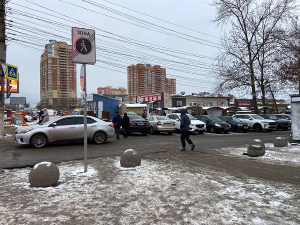 Тогда же на территории сделали знак «Пешеходная зона». Однако установленный знак не мешает водителям снова парковаться здесь.
