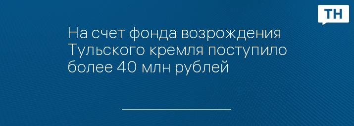 На счет фонда возрождения Тульского кремля поступило более 40 млн рублей