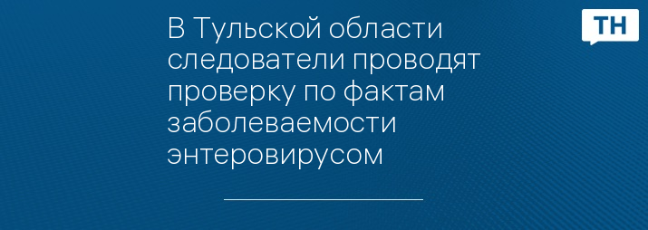 В Тульской области следователи проводят проверку по фактам заболеваемости энтеровирусом