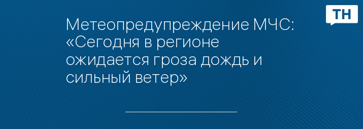 Метеопредупреждение МЧС: «Сегодня в регионе ожидается гроза дождь и сильный ветер»