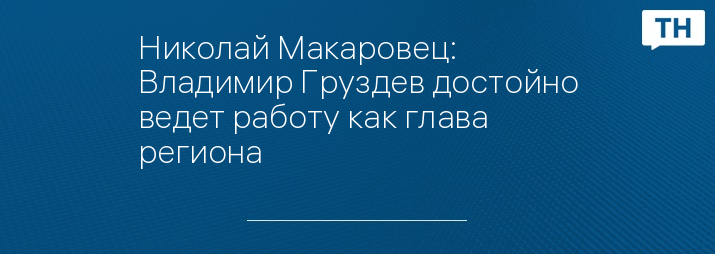 Николай Макаровец: Владимир Груздев достойно ведет работу как глава региона