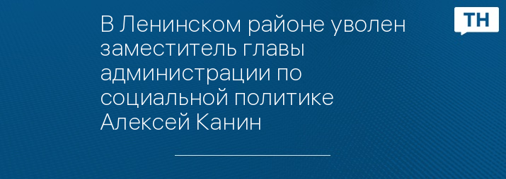 В Ленинском районе уволен заместитель главы администрации по социальной политике Алексей Канин