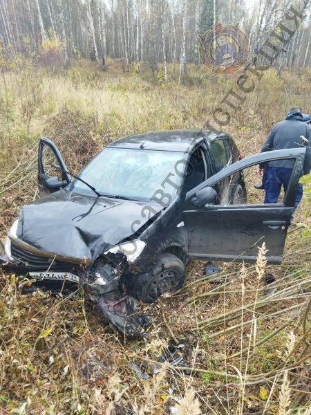 Водитель хэтчбэка съехал с дороги, предварительно проехав по встречке. После того, как автомобиль съехал с дороги, он перевернулся.