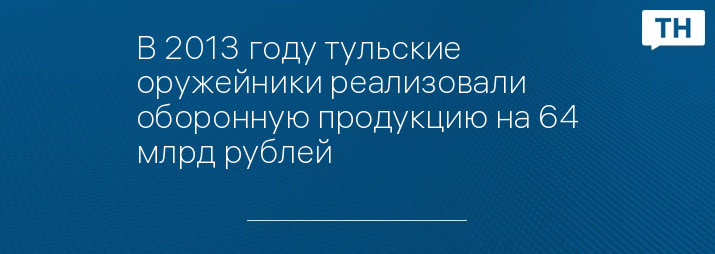 В 2013 году тульские оружейники реализовали оборонную продукцию на 64 млрд рублей