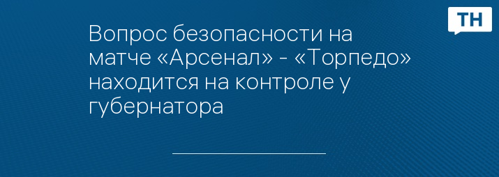 Вопрос безопасности на матче «Арсенал» - «Торпедо» находится на контроле у губернатора