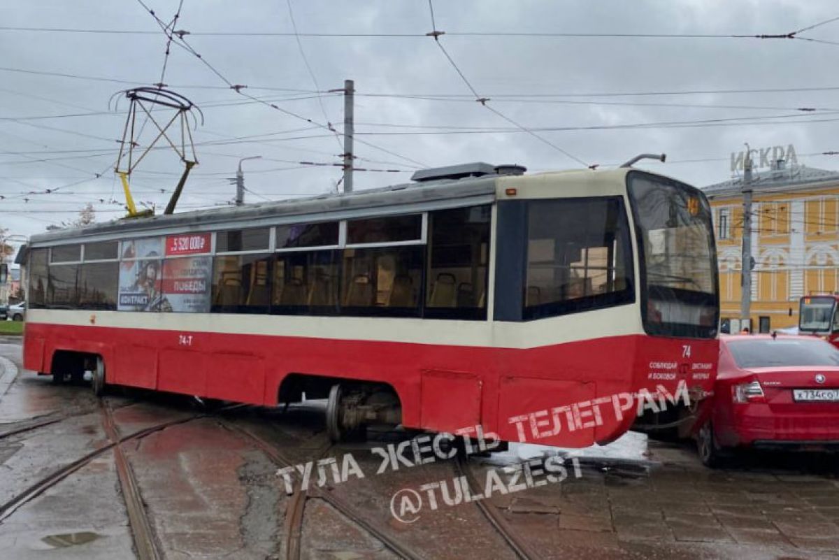 В Туле на улице Советская столкнулись трамвай и легковой автомобиль