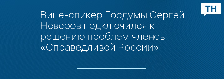 Вице-спикер Госдумы Сергей Неверов подключился к решению проблем членов «Справедливой России»