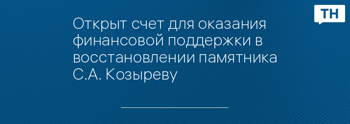 Открыт счет для оказания финансовой поддержки в восстановлении памятника С.А. Козыреву