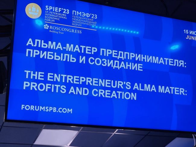 На Петербургском международном экономическом форуме начала работать сессия «Альма-матер предпринимателя: прибыль и созидание». На встрече обсуждаются вопросы формирования предпринимательского сообщества, предпринимательского мышления и мировоззрения будущих предпринимателей.