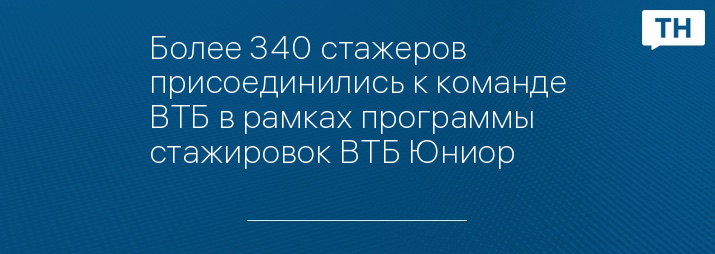 Более 340 стажеров присоединились к команде ВТБ в рамках программы стажировок ВТБ Юниор