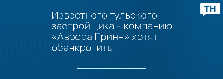 Известного тульского застройщика - компанию «Аврора Гринн» хотят обанкротить