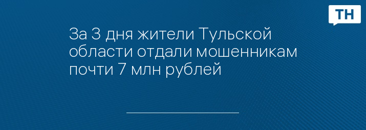 За 3 дня жители Тульской области отдали мошенникам почти 7 млн рублей
