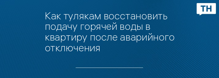 Как тулякам восстановить подачу горячей воды в квартиру после аварийного отключения