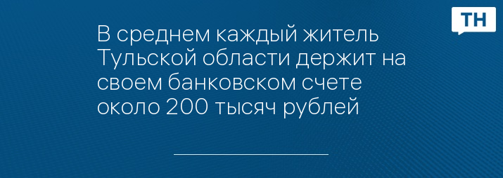 В среднем каждый житель Тульской области держит на своем банковском счете около 200 тысяч рублей
