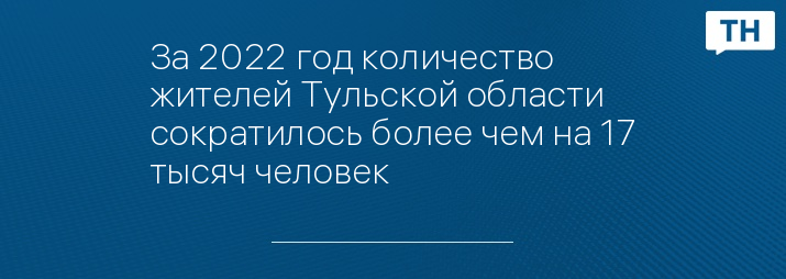 За 2022 год количество жителей Тульской области сократилось более чем на 17 тысяч человек