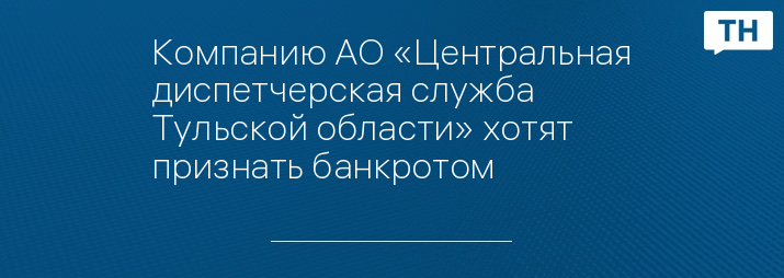 Компанию АО «Центральная диспетчерская служба Тульской области» хотят признать банкротом