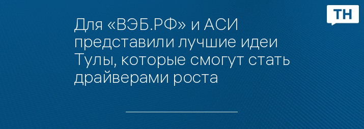 Для «ВЭБ.РФ» и АСИ представили лучшие идеи Тулы, которые смогут стать драйверами роста