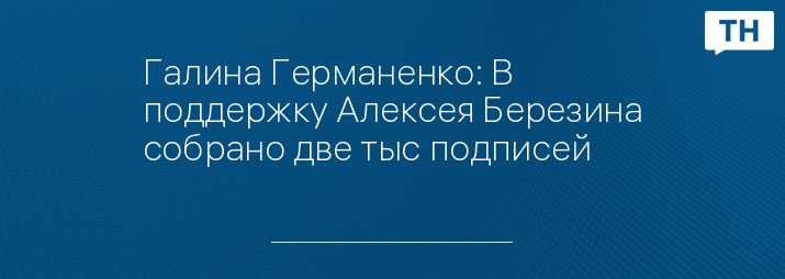 Галина Германенко: В поддержку Алексея Березина собрано две тыс подписей