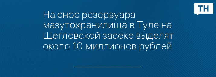 На снос резервуара мазутохранилища в Туле на Щегловской засеке выделят около 10 миллионов рублей