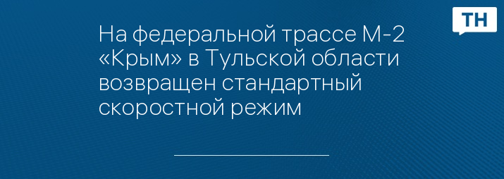 На федеральной трассе М-2 «Крым» в Тульской области возвращен стандартный скоростной режим