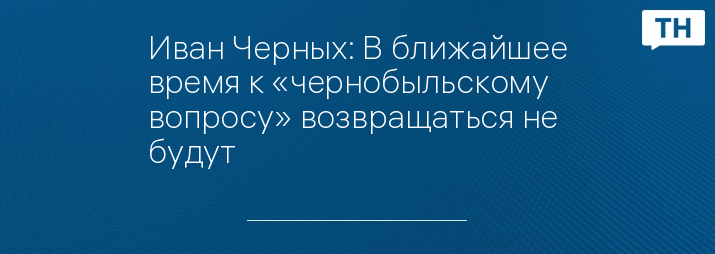Иван Черных: В ближайшее время к «чернобыльскому вопросу» возвращаться не будут
