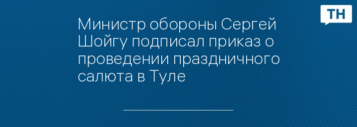 Министр обороны России Сергей Шойгу подписал приказ о проведении праздничного салюта в Туле и других городах-героях России. Соответствующий приказ министра опубликован в газете «Красная звезда».