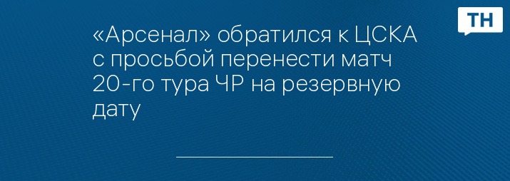 «Арсенал» обратился к ЦСКА с просьбой перенести матч 20-го тура ЧР на резервную дату