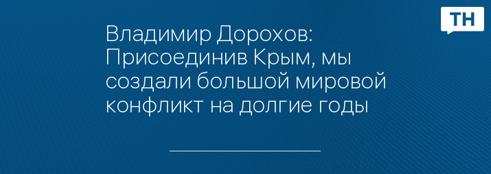 Владимир Дорохов: Присоединив Крым, мы создали большой мировой конфликт на долгие годы