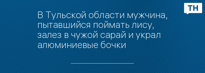 В Тульской области мужчина, пытавшийся поймать лису, залез в чужой сарай и украл алюминиевые бочки