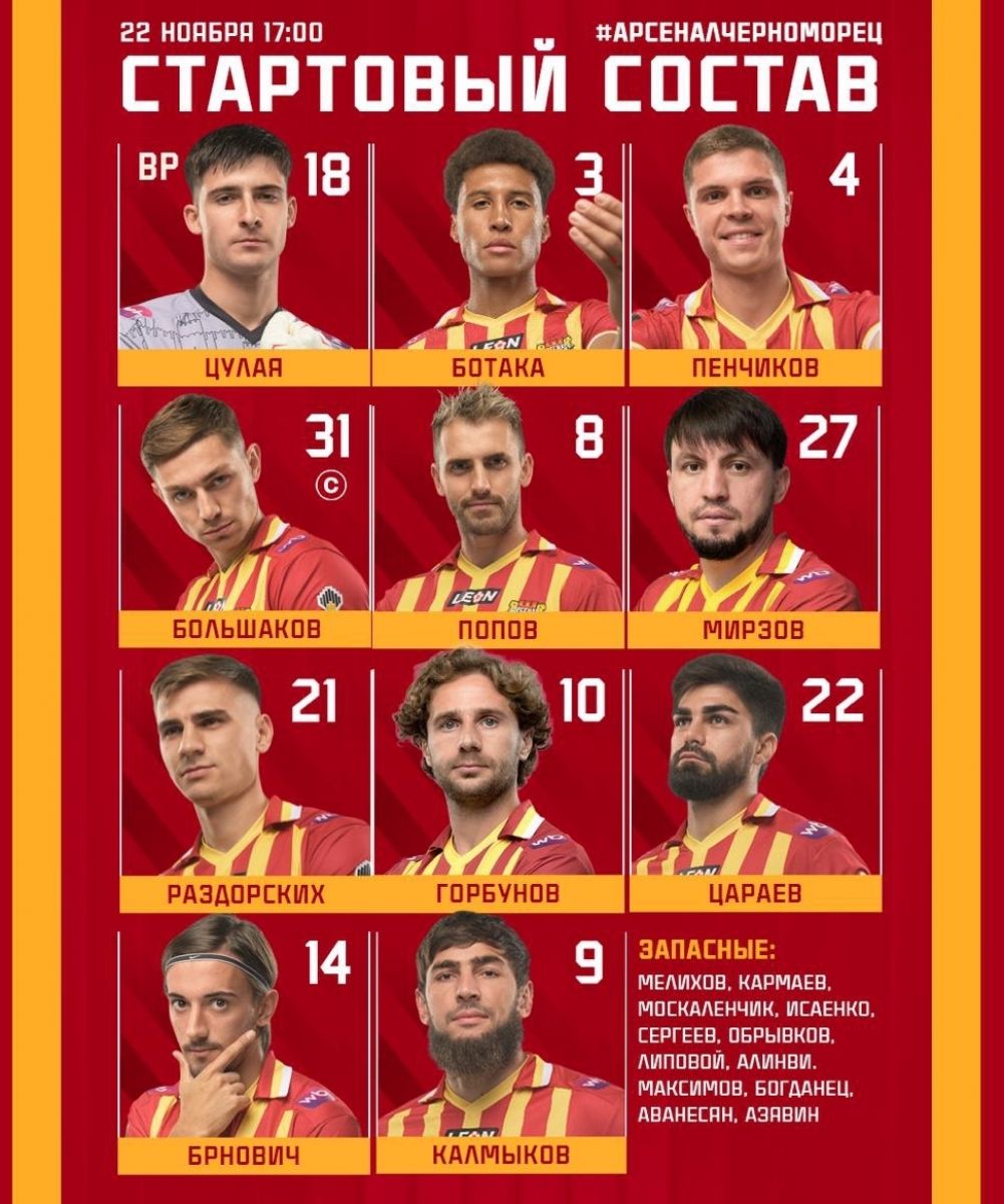 «Арсенал» начинает домашний матч против «Черноморца»: составы команд