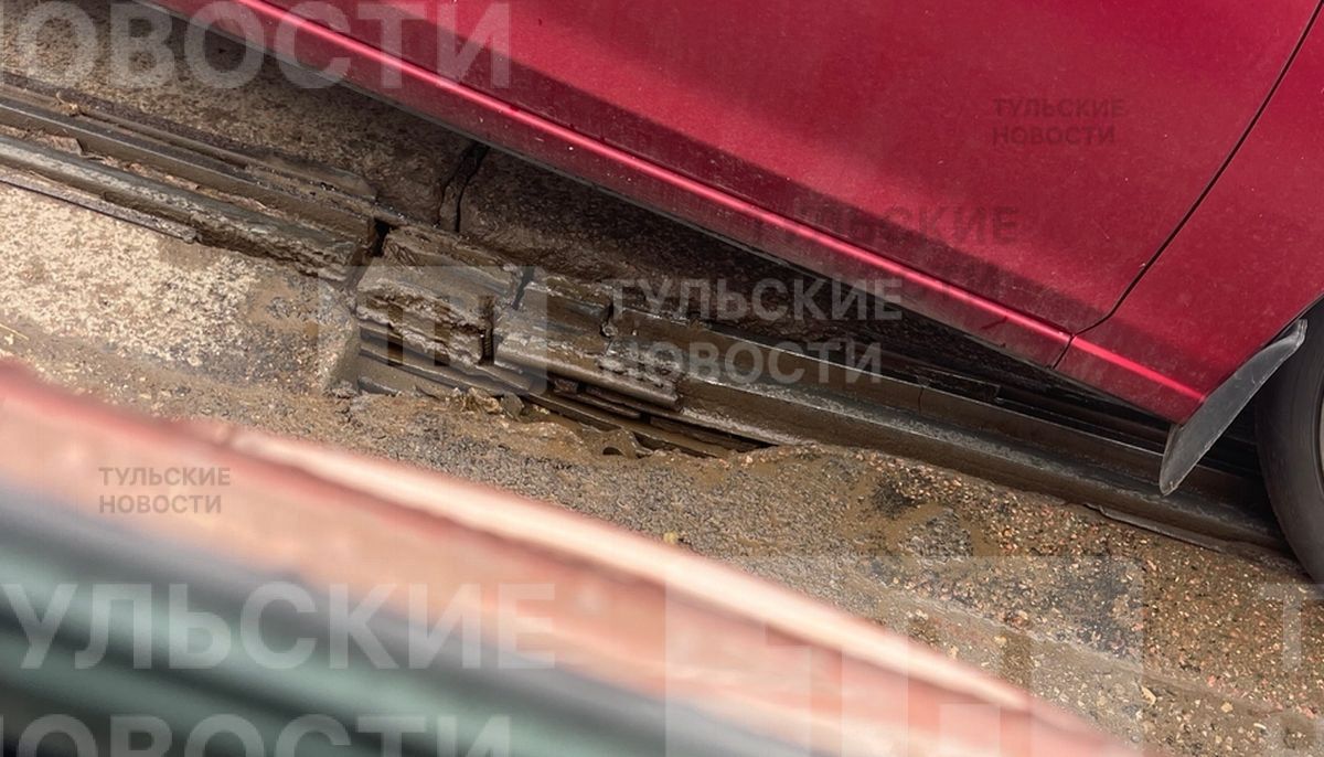 Туляки делятся кадрами трамвайных путей до ДТП на мосту