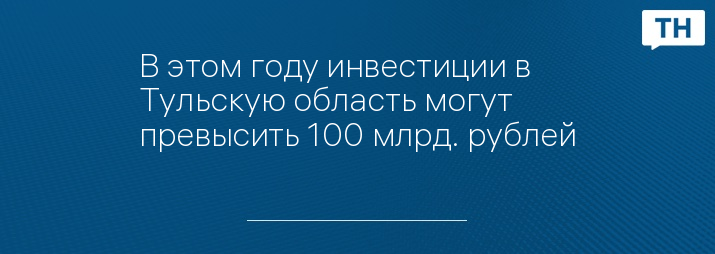 В этом году инвестиции в Тульскую область могут превысить 100 млрд. рублей