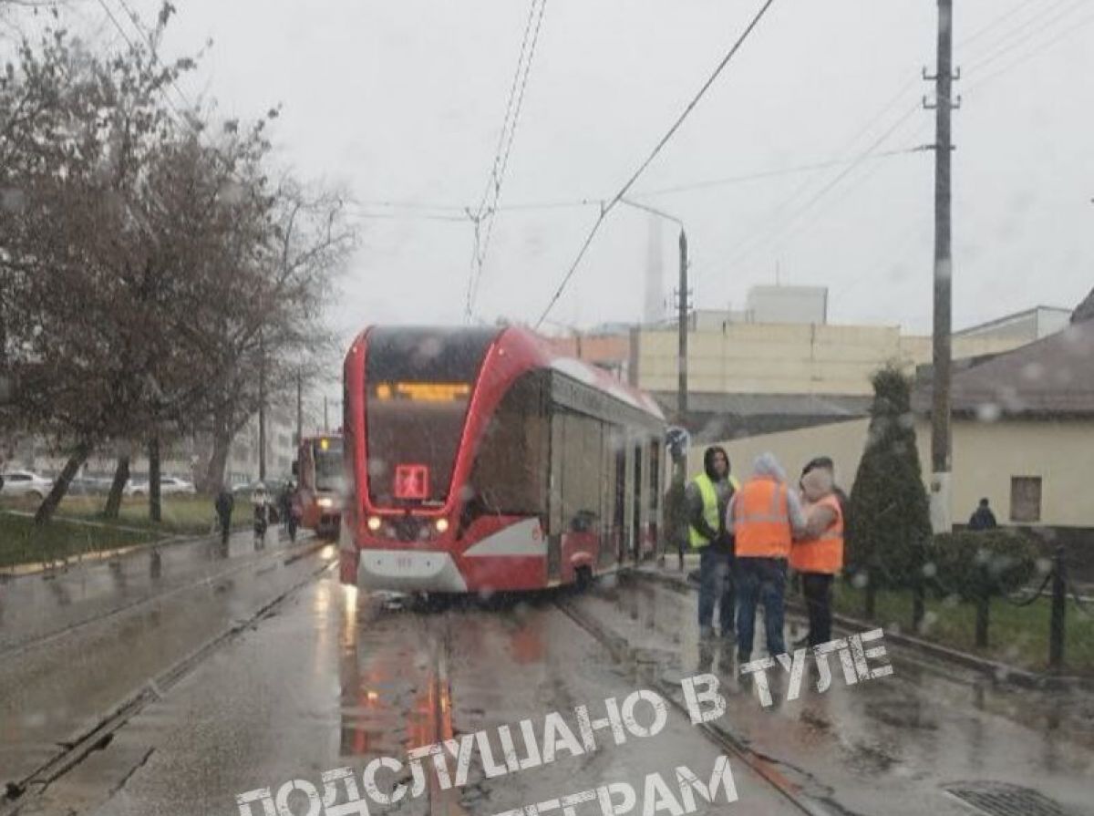 Трамвай сошел с рельс на улице Коминтерна в Туле