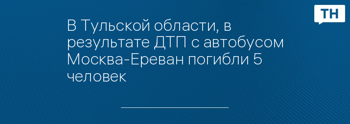 В результате ДТП с автобусом Москва-Ереван, которое произошло в Узловском районе Тульской области, погибли 5 человек и 12 пострадали.