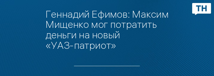Геннадий Ефимов: Максим Мищенко мог потратить деньги на новый «УАЗ-патриот»