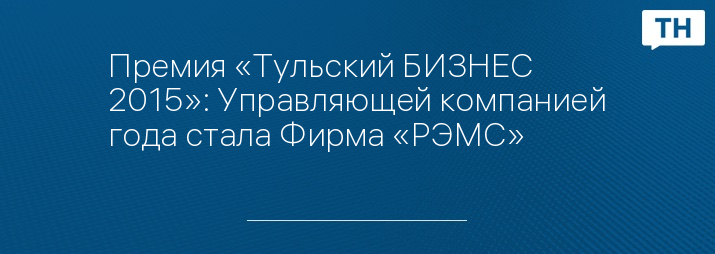 Премия «Тульский БИЗНЕС 2015»: Управляющей компанией года стала Фирма «РЭМС»