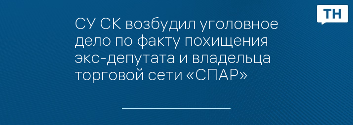 СУ СК возбудил уголовное дело по факту похищения экс-депутата и владельца торговой сети «СПАР»