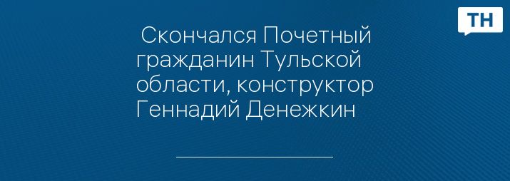 Врио Губернатора Тульской области Алексей Дюмин выразил соболезнования в связи с кончиной Почетного гражданина Тульской области, учёного и конструктора в области проектирования реактивных систем залпового огня, доктора технических наук, заслуженного конструктора Российской Федерации Геннадия Денежкина.