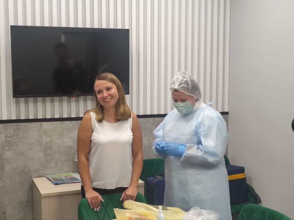 Измерить температуру, рассказать о недавно перенесенных заболеваниях, померить сатурацию и убедиться в отсутствии аллергии на яичный белок – эти необходимые процедуры провели перед вакцинацией от гриппа сотрудники организаций «Мой семейный центр» и «Герой 71», к которым медицинские работники приехали прямо на рабочее место.