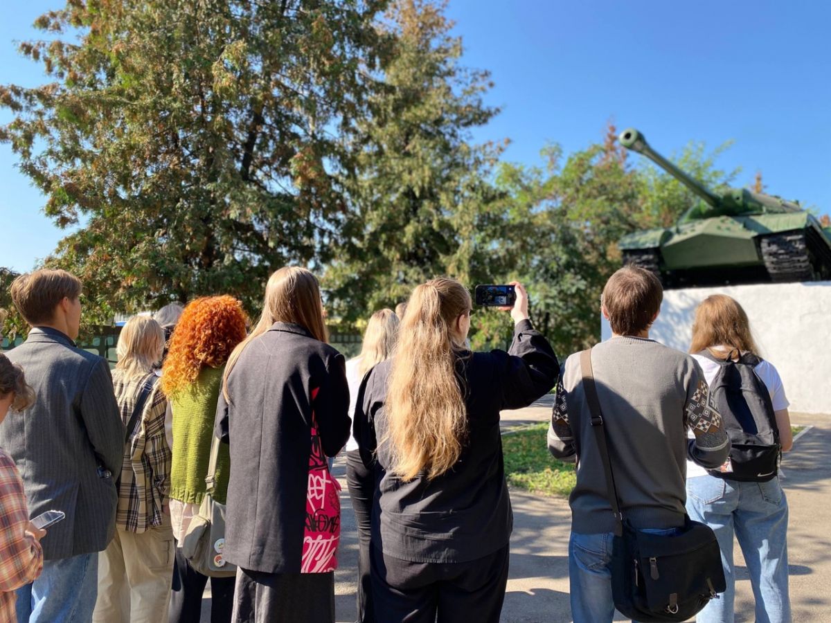 Первой локацией стала площадь Победы, где студенты узнали о символике монумента — фигурах солдата и рабочего, трех стальных штыках, стелах, которые посвящены городам-героям и крепости-герою Бресту, а также воинским частям и соединениям, оборонявшим Тулу в Великую Отечественную войну.