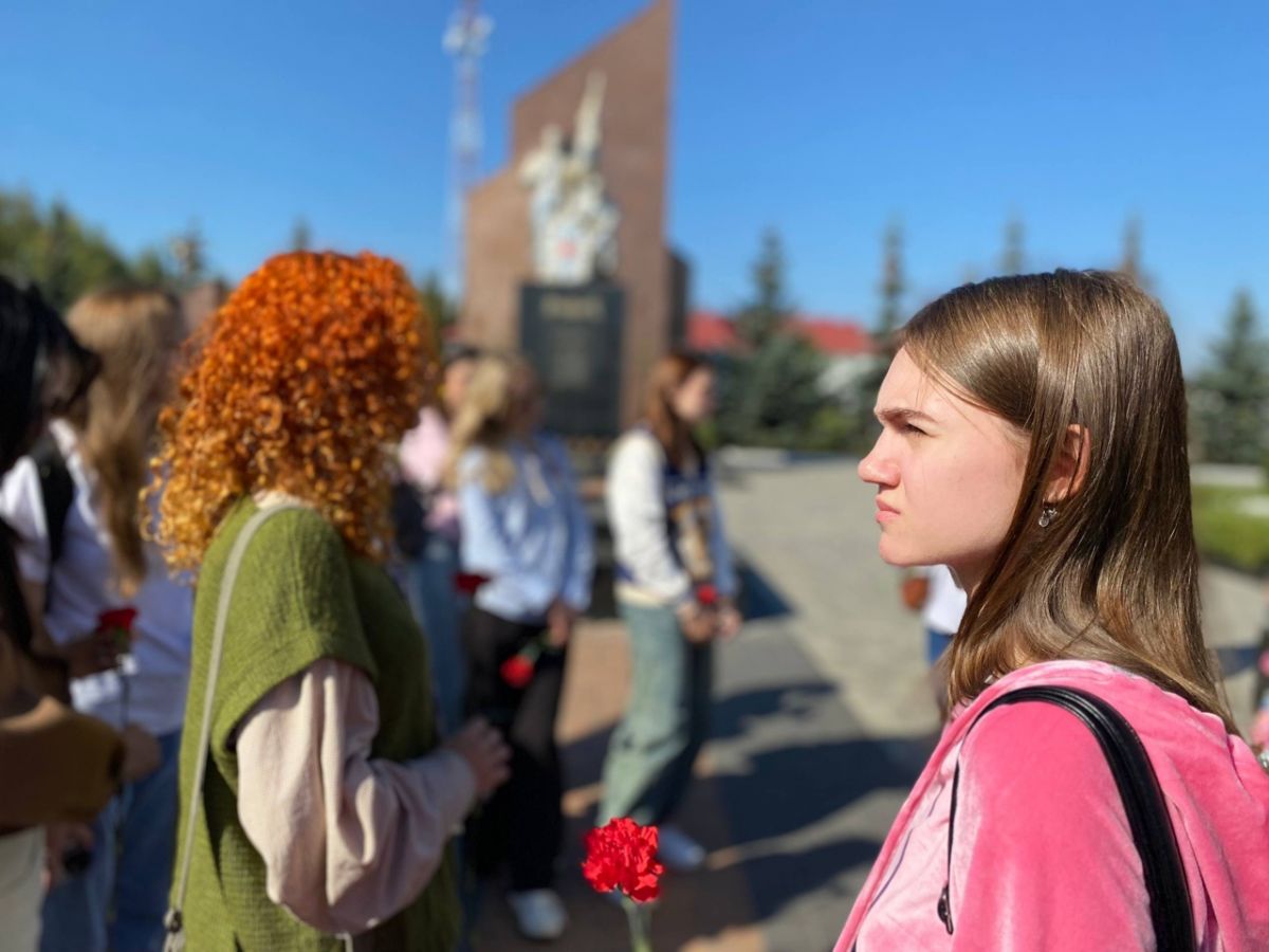 Кульминацией программы стало посещение первого зажженного в СССР Вечного огня. Памятное место находится в поселке Первомайский. Здесь студенты возложили цветы и почтили память павших минутой молчания.