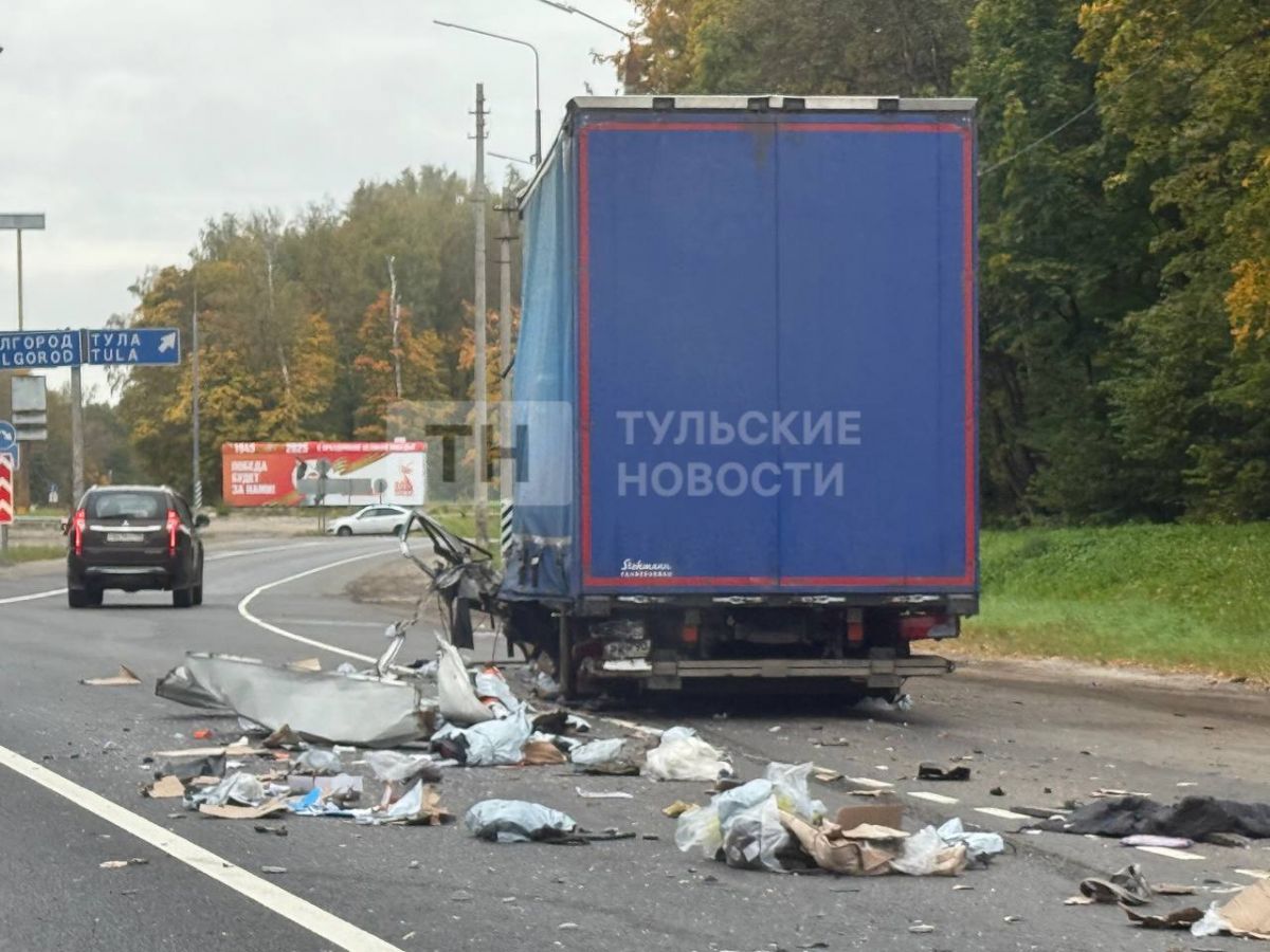 Соцсети: в Тульской области на трассе М-2 столкнулись «газель» и большегруз