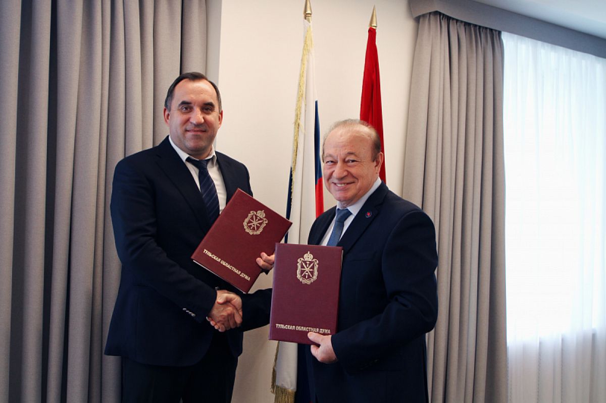 Документ о сотрудничестве и взаимодействии подписали спикер регионального парламента Андрей Дубровский и председатель Общественной палаты Тульской области Юрий Цкипури.