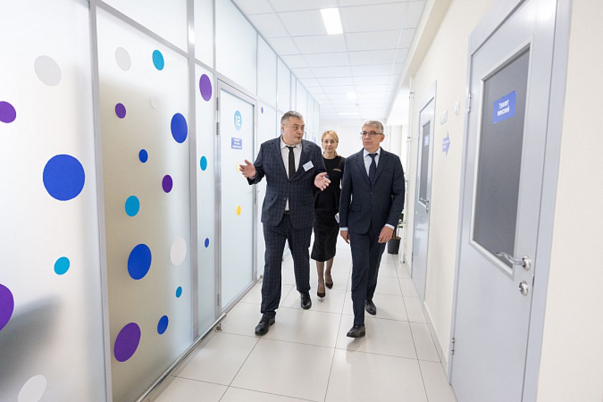 Глава региона осмотрел полустационарное отделение социальной реабилитации детей с ограниченными возможностями здоровья, сенсорную комнату, театральную и творческую мастерские, учебный класс, медиамастерскую креативных технологий, службу единого окна и ранней помощи, спортивный зал, отделение обеспечения техническими средствами реабилитации и протезно-ортопедическими изделиями и пункт проката.