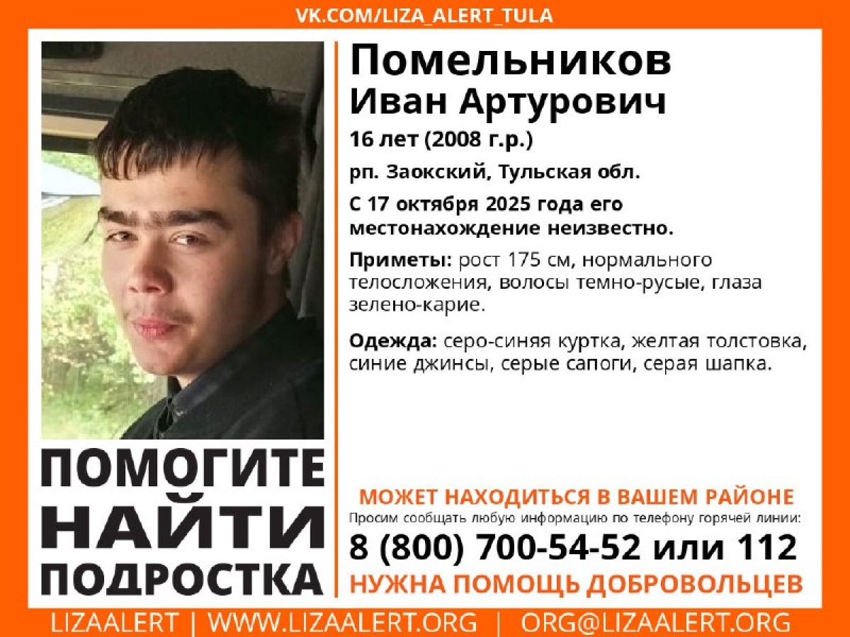 В Заокском районе ищут Ивана Помельникова — ориентировкой поделились тульские поисковики «ЛизаАлерт».