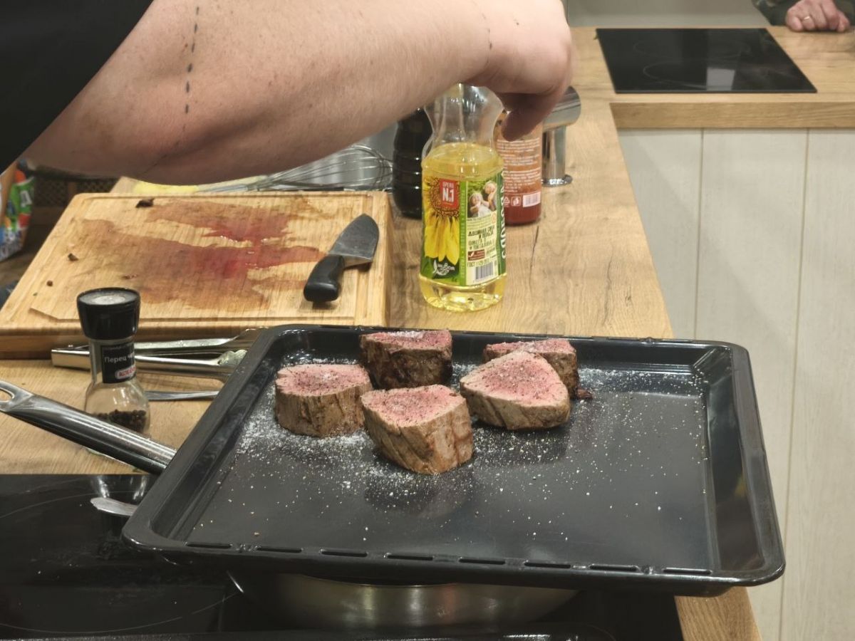 «Мы решили немного разнообразить досуг девушек, чтобы они не скучали. У нас запланировано готовить тартар из лосося в азиатском стиле, а на горячее — жареный ростбиф с картофелем и соусом из жареных белых грибов», — сказал шеф-повар.