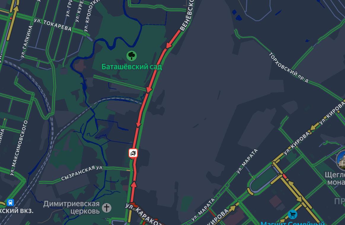 В Туле на выезде на Веневское шоссе туляки оказались в багровой пробке. Об этом сообщают очевидцы в социальных сетях.