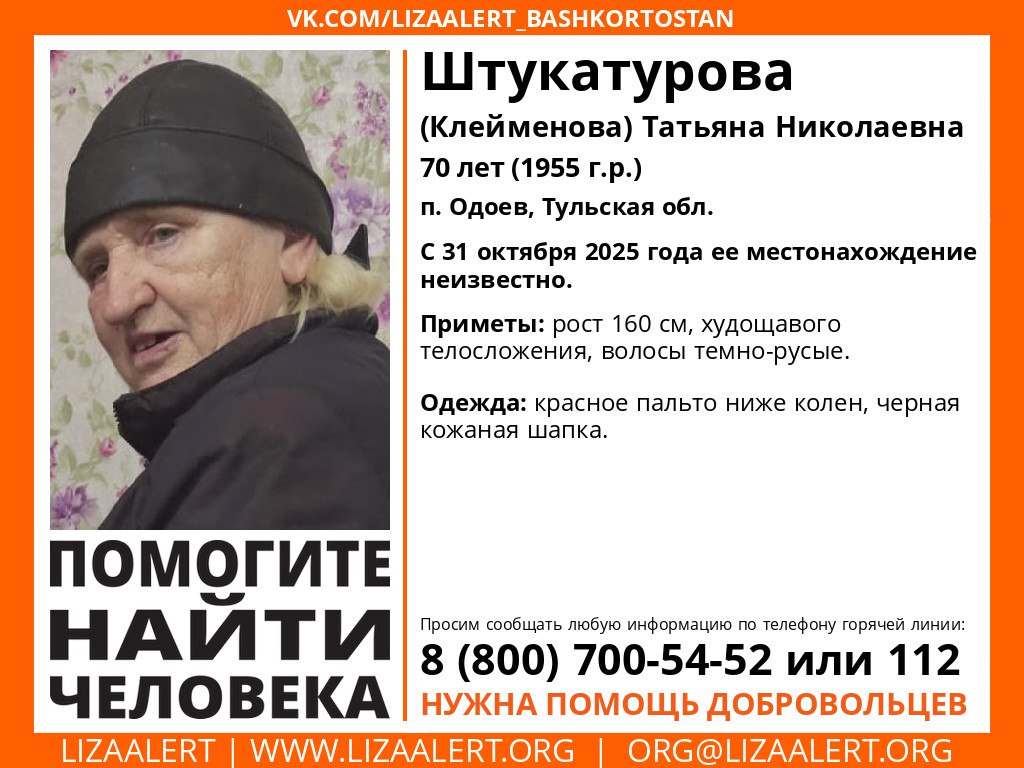Всех, кто имеет информацию о местонахождении Татьяны, просят связаться с поисковиками по номеру, указанному в ориентировке.