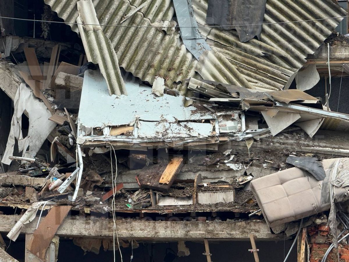 На фото с места событий обрушившегося дома видны щепки, штукатурка и грязь